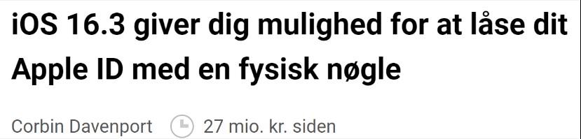 iOS 16.3 giver dig mulighed for at låse dit Apple ID med en fysisk nøgle