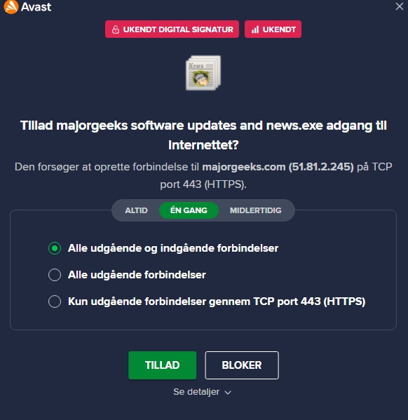 Der følger En VPN med, og opdatering af dine programmer. Men det er deres firewall der er vildt god. Du kan sætte den til "spørg" om noget skal have lov til at komme på nettet, og så kan man vælge hvordan det skal på. Det er rigtigt godt, og jeg har ikke set andre programmer der kommer med dette. Når programmet er lukket skal der spørges igen. Total vild pris her. https://www.productkeys.dk/produkt/avast-premium-security-1-year-1-pc/ ![]() ![]() |
